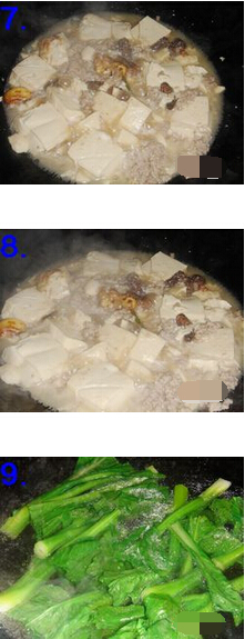 羊肚菌燒豆腐的材料:羊肚菌10個(gè),豆腐4塊,碎豬肉2兩,青菜6棵,姜蒜各一小塊,
