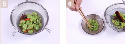 2.坐鍋倒水燒開(kāi),把花椒、八角、干辣椒、桂皮和鹽放入鍋中,把蠶豆加入鍋中后,再轉(zhuǎn)小火慢慢煮制約8分鐘后離火,撈出煮好的蠶豆以及鍋內(nèi)其他香料,撈干放涼,最后將蠶豆盛入盤(pán)中即可。