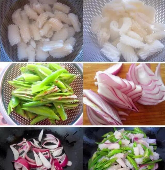 熗拌魷魚的材料:魷魚,尖椒,洋蔥,鹽,黑胡椒美食網(wǎng)