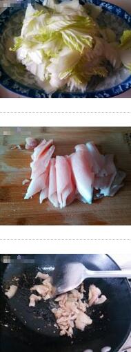 1.大白菜洗凈撕成片,豬肉切成薄片