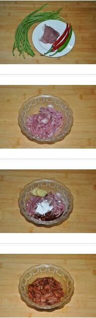 1. 將肉洗凈,切成肉絲,肉絲中放入三片生姜、兩勺老抽、適量生粉攪拌均勻,腌制10分鐘。