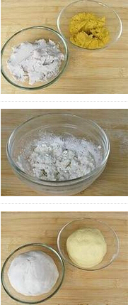 1.芋頭、紅薯分別去皮后切成小塊,放入碗里,用蒸鍋或微波爐蒸熟