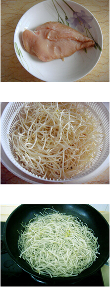 熗拌雞絲綠豆芽的做法: