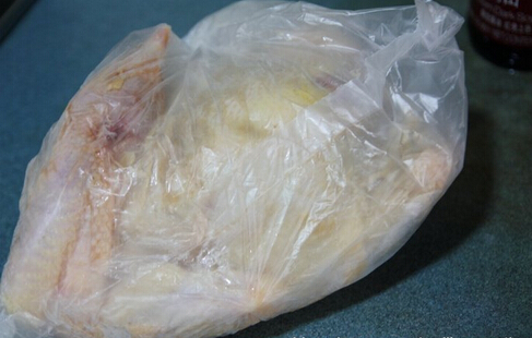 3、將抹了調(diào)料的雞只用保鮮袋包裹好放進(jìn)冰箱冷藏一個晚上。