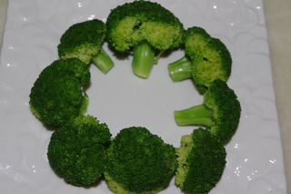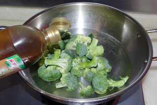 3 先鍋里倒水放入洗凈的西蘭花氽熟(加入適量高湯調(diào)料、鹽、料酒)