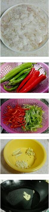 4.辣椒洗干凈,從中間劃開把辣椒心挖掉。把辣椒斜切,然后生姜切片,姜末,蒜蓉。
