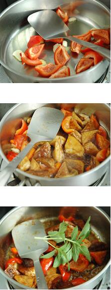 三杯豆腐的材料:豆腐,紅柿子椒,鮮羅勒