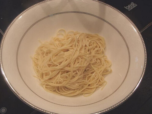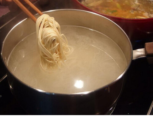 4、煮滾高湯的同時,另一鍋的熱水沸騰時,面條也可以下鍋開始汆燙。
