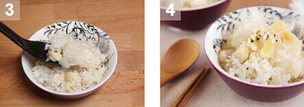 3. 在電飯煲中加入米,薏米,南杏和白木耳,倒入水,之后煮飯。當(dāng)飯煮熟之后將所有食材攪勻就可以開始啦。