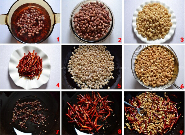 麻辣花生米的做法: