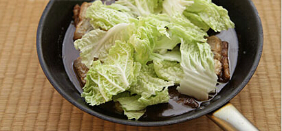 5、放入白菜,繼續(xù)燜燒幾分鐘,加鹽調(diào)味即可。