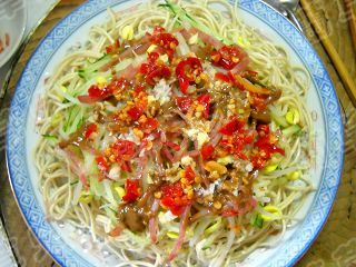 3、個(gè)人覺(jué)得,吃涼面多放點(diǎn)醋,風(fēng)味就大不相同。