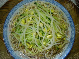 7 黃豆芽入開(kāi)水中焯熟。