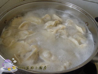鍋?zhàn)訜_水,將餃子放入,用勺子背沿鍋沿輕推,防止粘連。將餃子煮至餃子浮起,肚子鼓起即可。因?yàn)轱溩邮撬仞W,所以易熟。