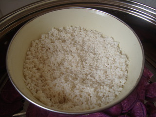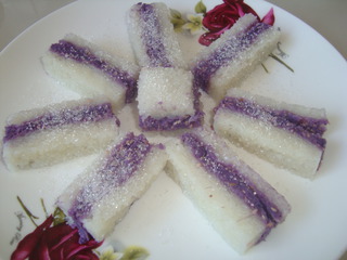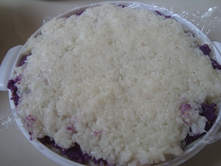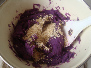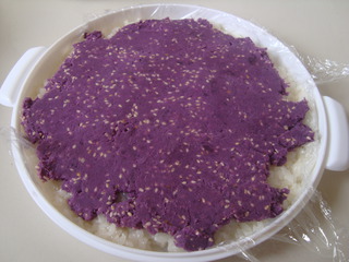 3、紫薯泥和糯米飯都要趁熱放在一起,否則黏度不好,容易開裂。
