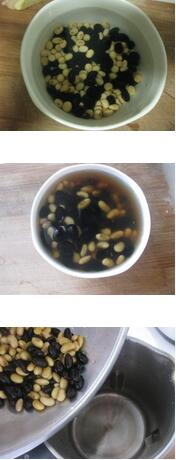 1.準備好黑豆和黃豆,加水浸泡一晚上到第二天,豆子明顯膨脹了怎么做好吃