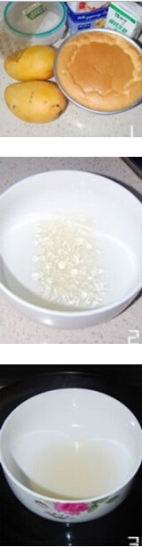 1.魚膠片用冷水浸泡至軟,擠干水份的魚膠片隔水融化后放涼