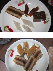 4.同意的方式單獨(dú)蒸一個(gè)純紅糖漿和一個(gè)椰汁漿的。