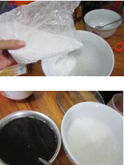 1.把馬蹄粉分別倒在兩個(gè)盤里,再把紅糖溶在滾開水里,攪成紅糖漿,把椰汁加入白糖倒入另一盤和馬蹄粉中,加入滾開水?dāng)嚦梢瓭{。 怎么做好吃