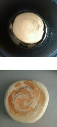 3. 電飯鍋內(nèi)抹上一點油,把餅放進去。按下煮飯鍵。等跳到保溫后,翻面在按煮飯鍵。如果按不下去就加點水,直到按下為止。