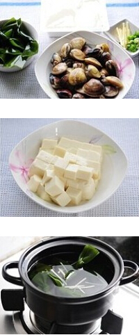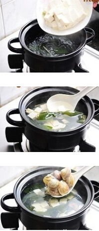 蛤蜊海帶豆腐湯的做法:
