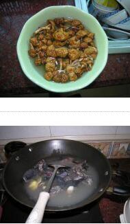 1. 滑子菇泡發(fā),烏雞洗凈斬塊焯水
