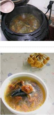 2. 將滑子菇,烏雞放入電壓力鍋中,按下煮湯鍵