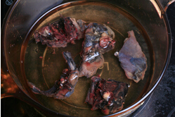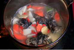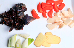 3.鍋內重新添水,并放入蔥、姜、烏雞。