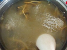 4 放入粉絲煮到八成熟(要是煮到喜歡的軟度,那么一會吃的時候就會膩)。