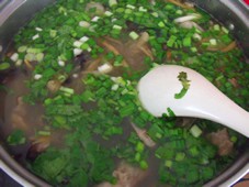 5 出鍋前放香菜和蒜苗,少許味精,香油。