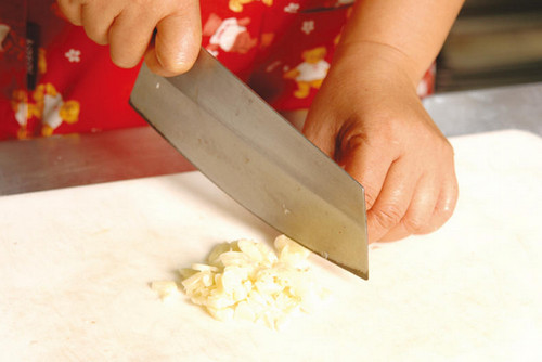 2、將蒜頭拍打并切成蒜末備用。