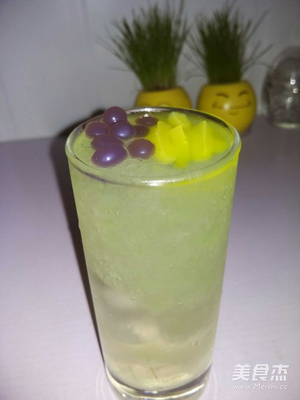 蜂蜜5克 涼白開水100毫升 冰塊220克 柳橙椰果30克 柳橙爆爆蛋30克