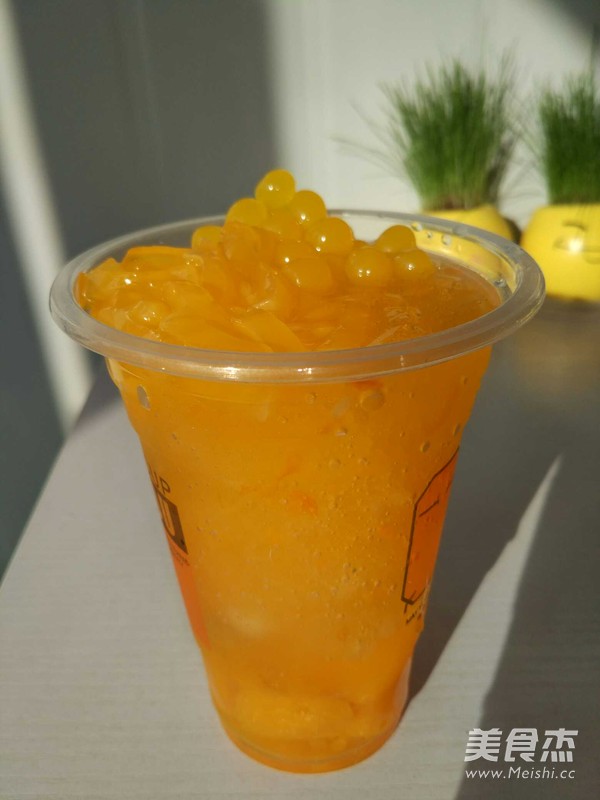 5.將我們第二步果醬冰倒入杯中,然后放上柳橙爆爆蛋和柳橙椰果。這款可以吸又可以吃的極致蜜橘柳橙沐冰就做好了。呵呵
