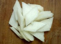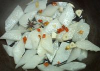 6.炒鍋熱油,放入白蘿卜片炒至發(fā)軟。