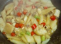 10.湯汁收到一半時放紅椒繼續(xù)煮。