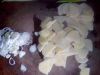1.把土豆去皮洗凈切成片,把蔥花切好備用