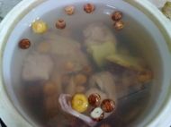 4.最后把蓮子、無花果、蜜棗、姜片、鵪鶉和豬肉放入燉盅里,注入水,燉2個(gè)小時(shí)即可。