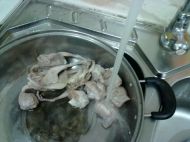 3.把鵪鶉和豬肉再用冷水沖一沖,洗去浮沫;