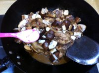 10.開鍋后的香菇雞,放入高壓鍋內(nèi),壓7分鐘。