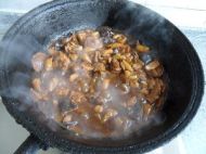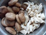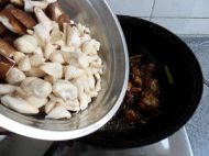 9.倒入香菇和杏鮑菇炒勻,倒入適量的清水,大火燒開
