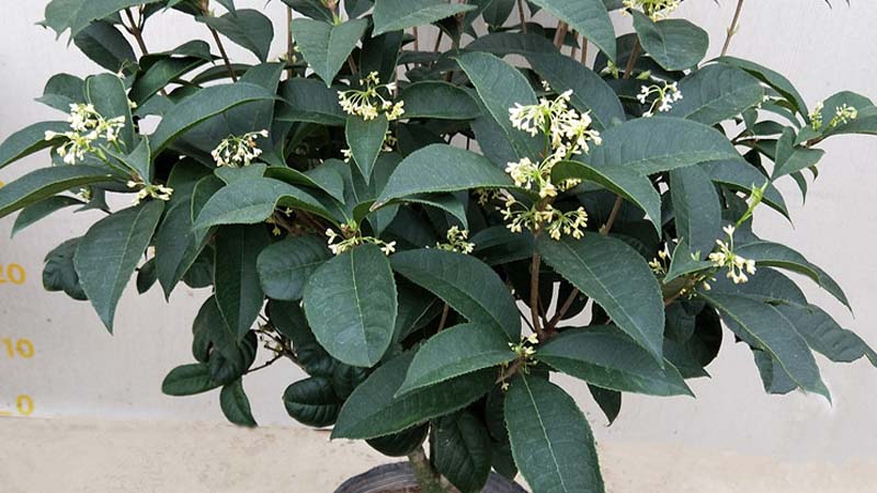 四季桂是桂花常見品種,為叢生灌木,樹形比較矮,樹冠為圓球形,新葉為深紅色,老葉變成綠色或者黃綠色,全緣或者疏生鋸齒,葉緣波狀不明顯,開花時花色比較淡,為乳黃色至檸檬黃,花香比較清淡,能夠四季開花。