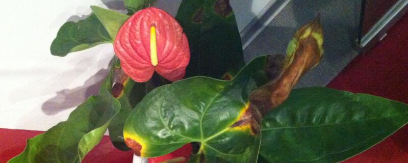 紅掌的澆水要掌握見干見濕的原則,保持土壤濕潤(rùn)但不得出現(xiàn)積水,一旦澆水過多導(dǎo)致積水,植株根部就會(huì)腐爛,葉子也會(huì)出現(xiàn)黃斑。需立即停止?jié)菜?,同時(shí)松動(dòng)土壤并加強(qiáng)通風(fēng),加速水分的蒸發(fā)。