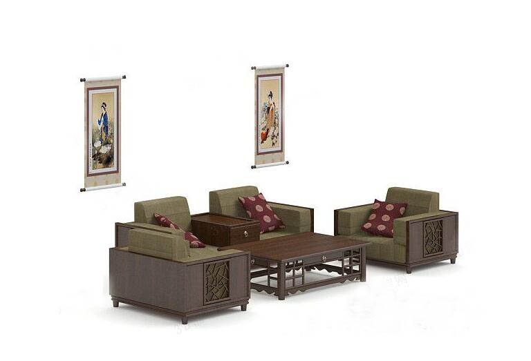 中式沙發(fā)3D模型下載