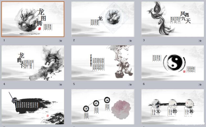 黑白調(diào)子的水墨畫早期都是以山水畫的形式來表現(xiàn)的,雖然僅有黑與白,但因為紙色的關(guān)系,其實是略為偏黃的。彩色的水墨畫在近代有潑墨山水的應(yīng)用,也有水墨動畫的應(yīng)用。家佳樂文學(xué)小編為您推薦家佳樂文學(xué)龍圖騰PPT模板,適用于文化匯報、教育匯報、項目匯報等。