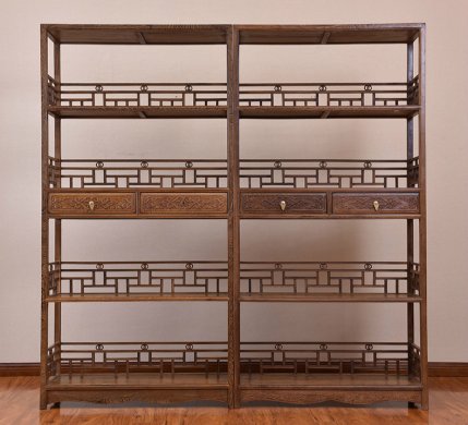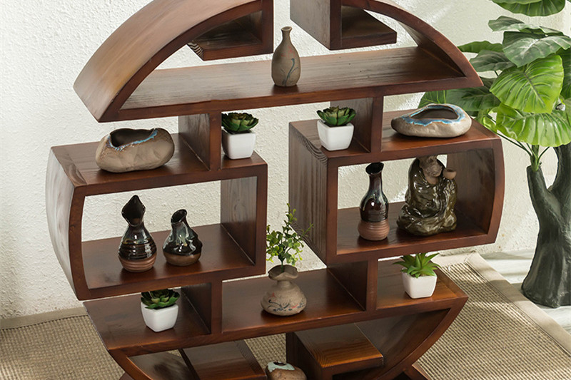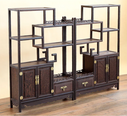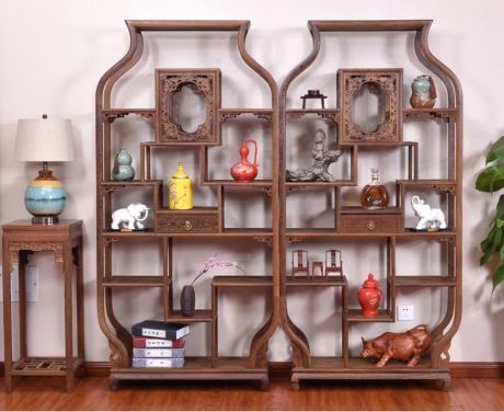 博古架是一種室內(nèi)陳列古玩珍寶類似書架式的一種木器,格內(nèi)可陳設(shè)各種古玩,每層形狀不規(guī)則,前后均敞開,無板壁封擋,便于從各個位置觀賞架上放置的器物,達到了功能性與觀賞……