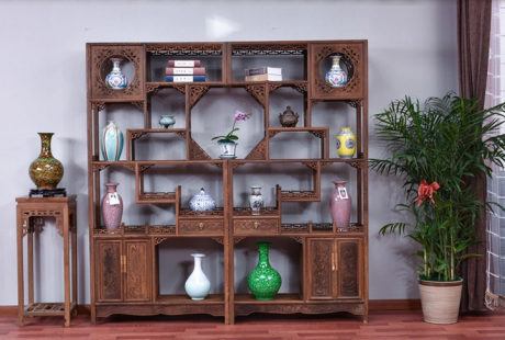 紅木家具始于明代。其外觀形體簡樸對稱,天然材色和紋理宜人。紅木家具采用優(yōu)質(zhì)而名貴的木材作原料,精雕細刻,制作出精美的藝術(shù)作品。家佳樂文學小編為您推薦中式紅木博古架酸枝……