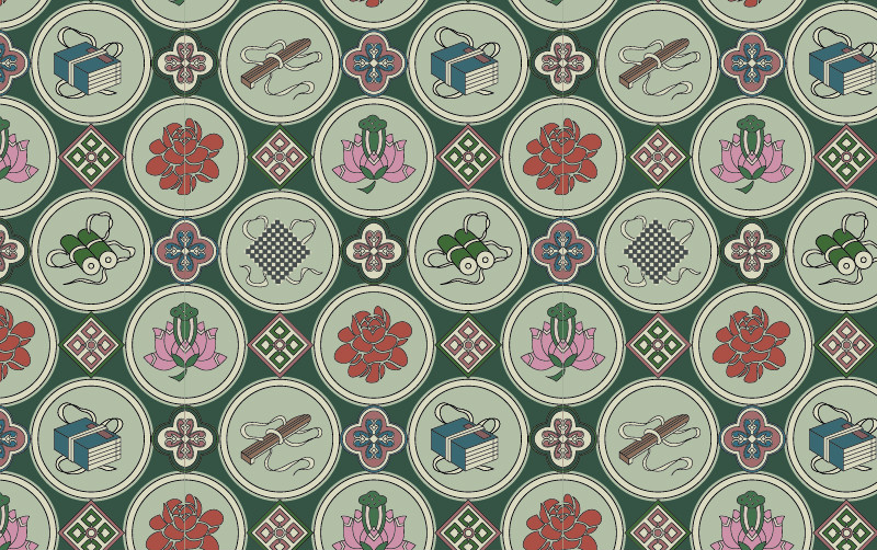 中國傳統(tǒng)琴棋書畫織錦圖案與配色,矢量素材A