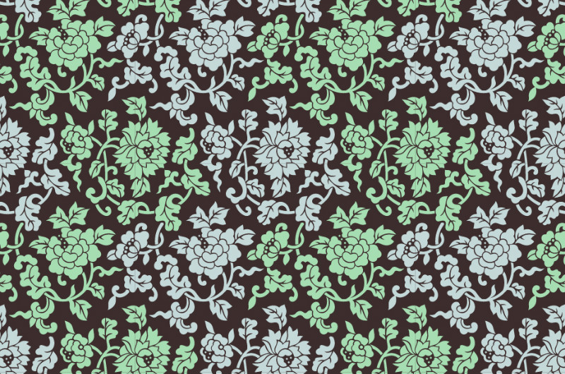 中國(guó)傳統(tǒng)織錦花卉圖案與配色,矢量素材AI圖片