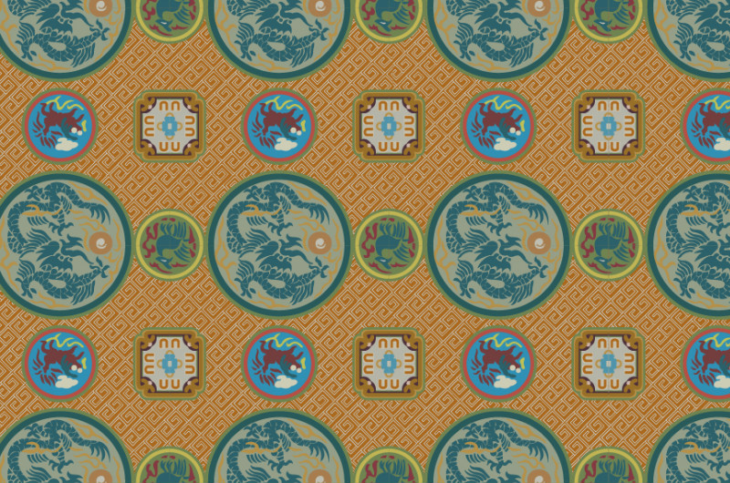 中國元素傳統(tǒng)織錦圖案與配色,矢量素材AI圖片