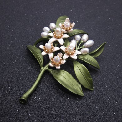 橙花樹葉,綠色烤漆,質(zhì)感上佳,請(qǐng)欣賞家佳樂文學(xué)小編為你帶來的精致珍珠復(fù)古胸針?!?/p>